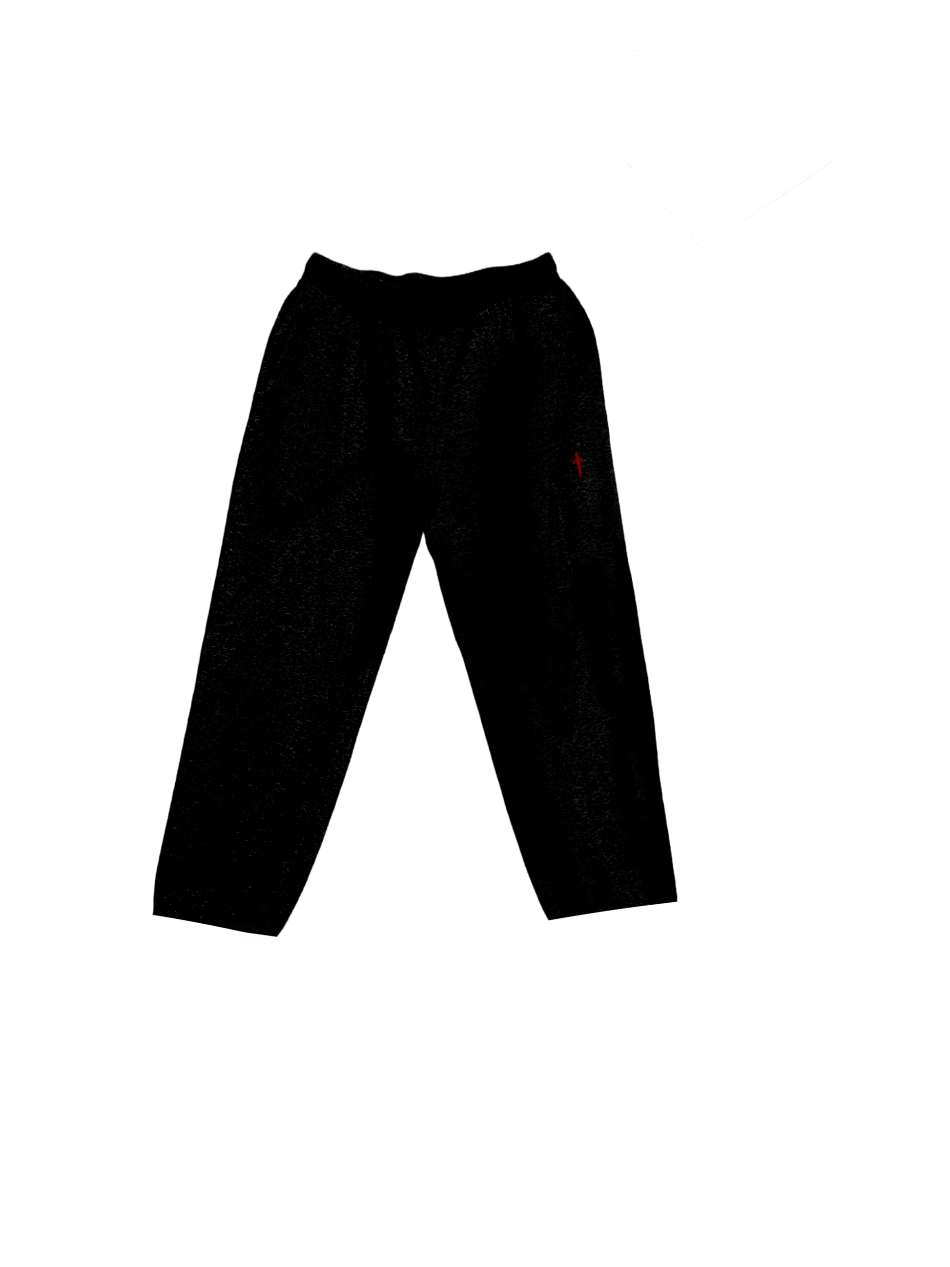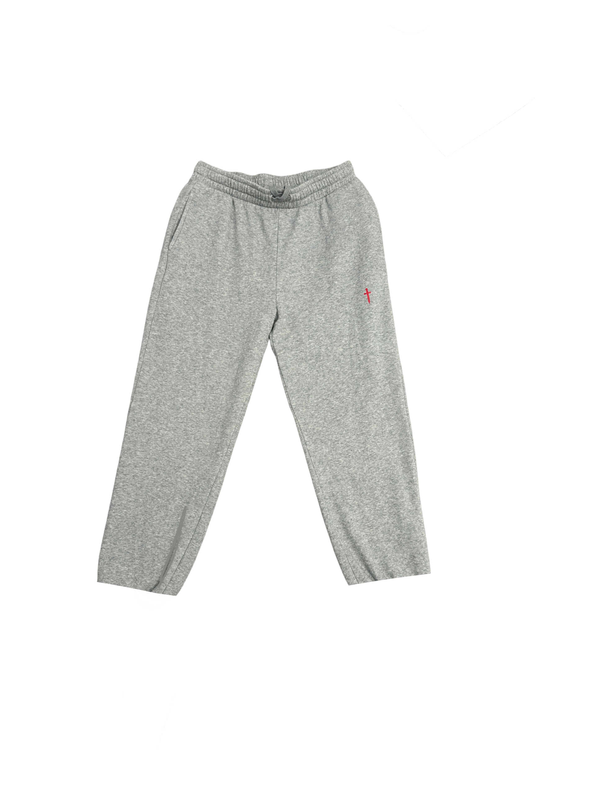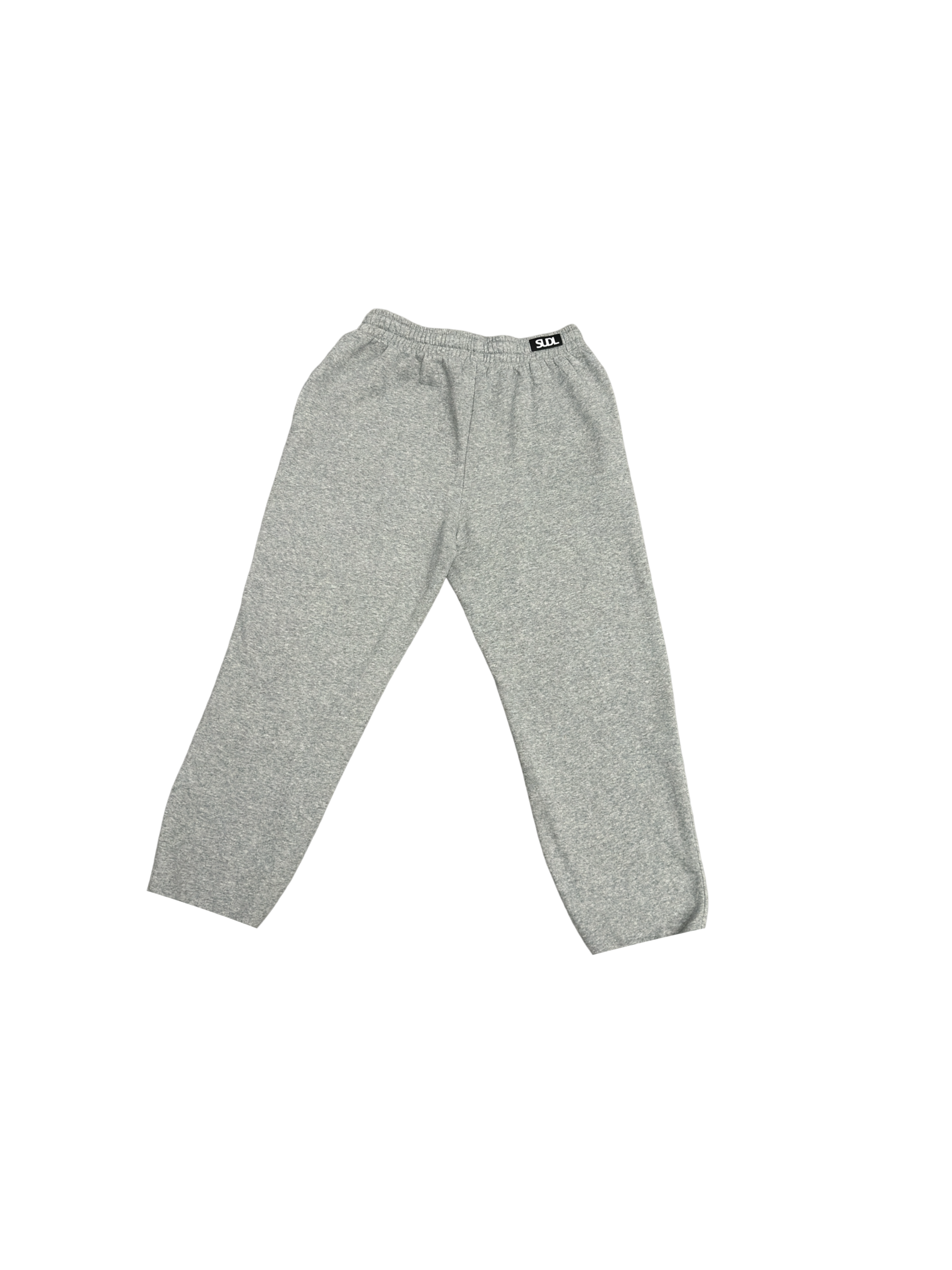 Flat drawstring mid-weight straight cut sweatpants in both grey and black.